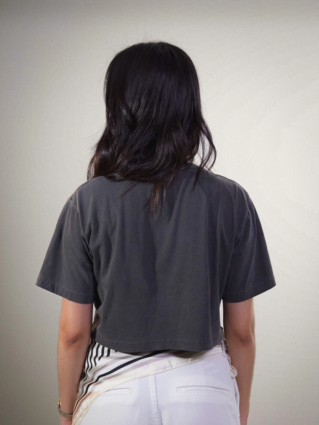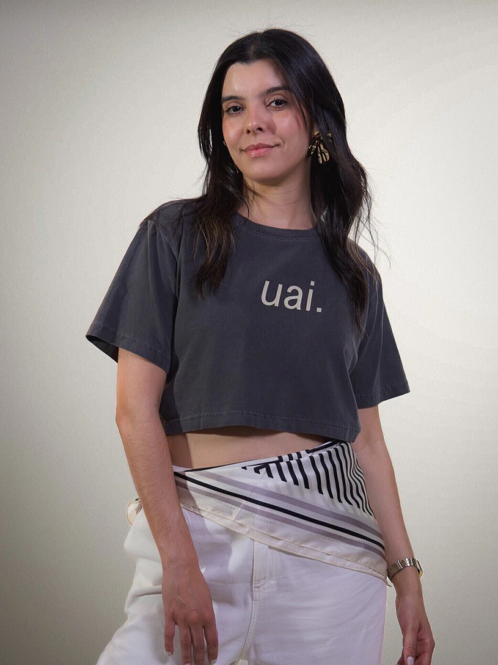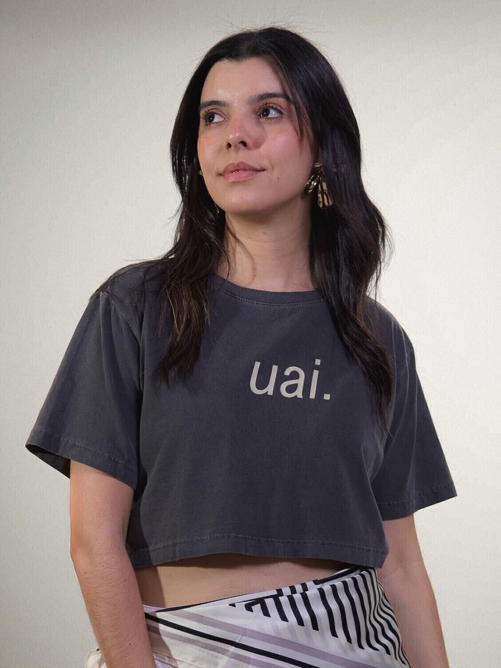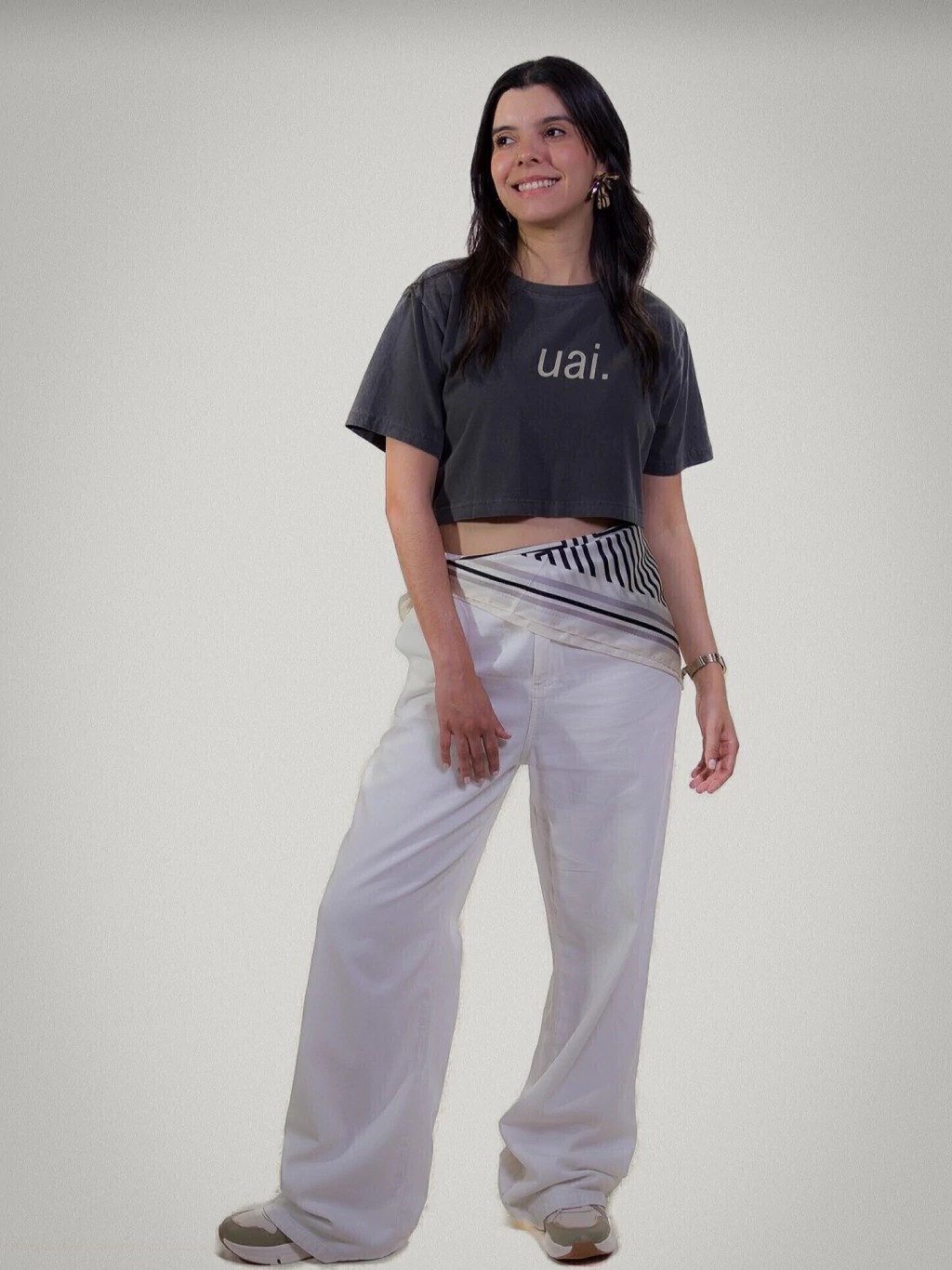 Cropped chumbo com lavagem estonada com estampa em silk off white