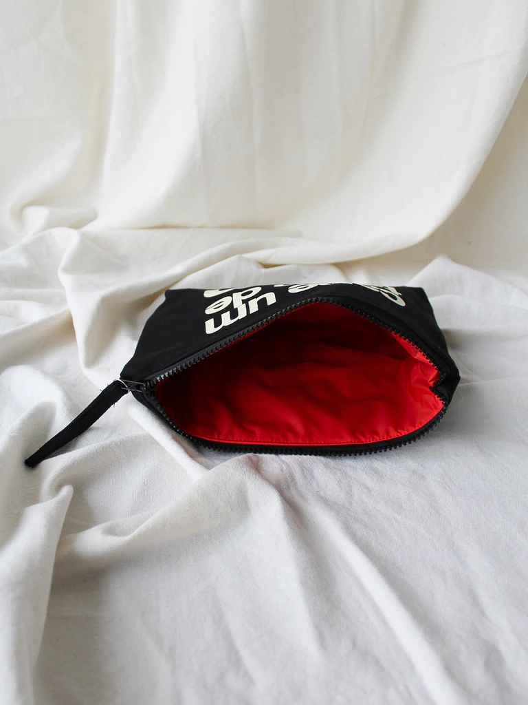 cor: preto com estampa em off white, com forro impermeável de nylon vermelho.